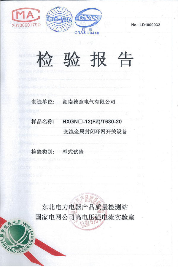 HXGN□-12(FZ)/T630-20型環(huán)網(wǎng)柜型式試驗(yàn)報(bào)告