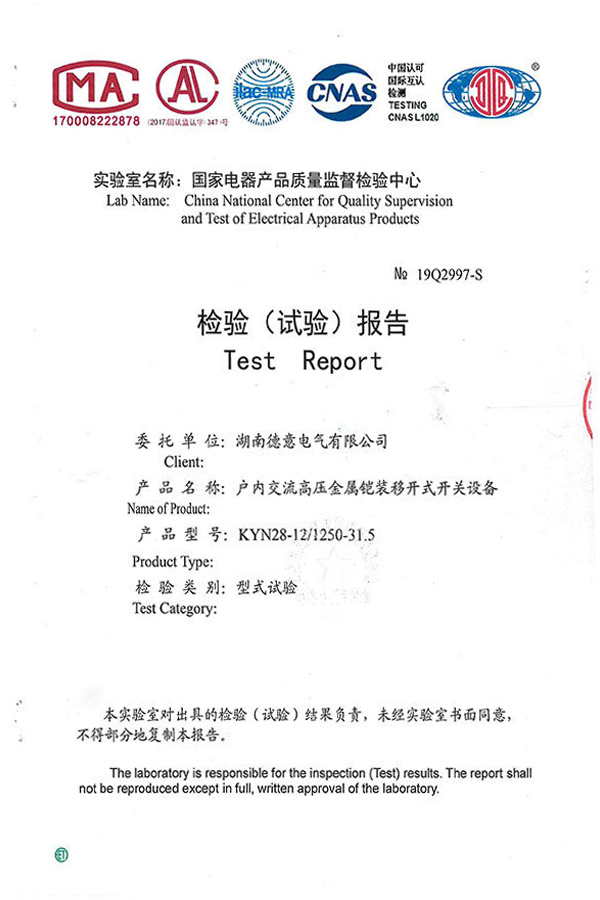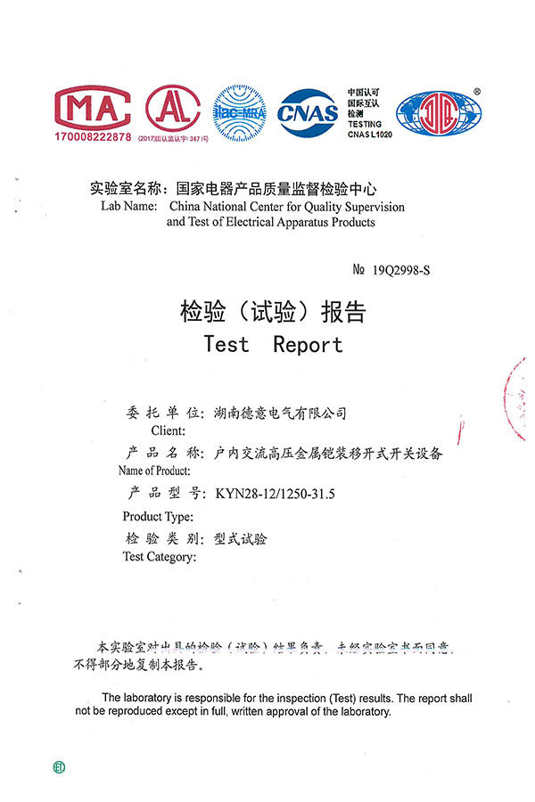 KYN28-12/1250-31.5KA型型式試驗(yàn)報(bào)告