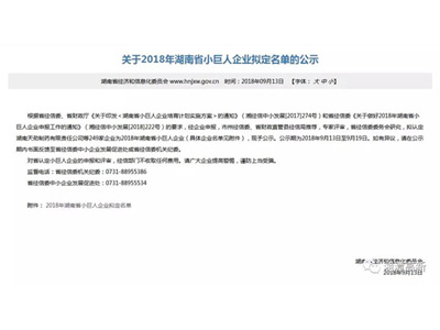 2018年湖南省小巨人企業(yè)擬定名單公示 湘潭高新區(qū)3家企業(yè)入選